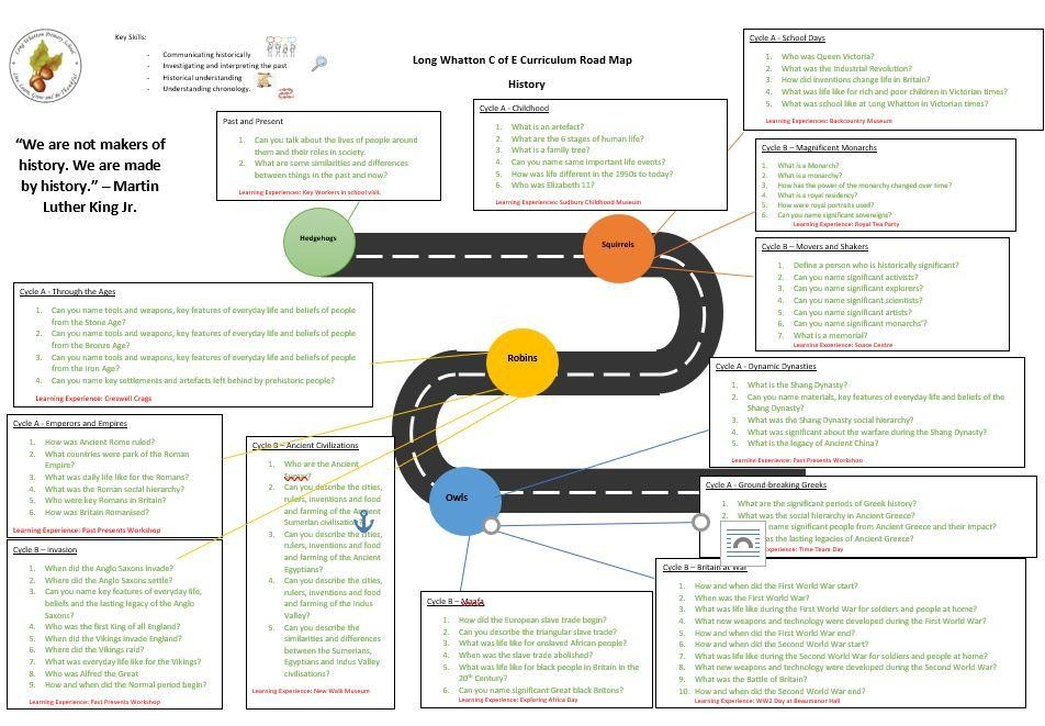 We master the historical skills needed to investigate and explore the events and people of history and grapple with big questions to understand how these have influenced our lives today. Our curriculum encourages our pupils to become curious about the past, they ask questions and want to know why, they seek a deeper understanding of what they have learned and make links between the events of the past and their impact on our lives today.